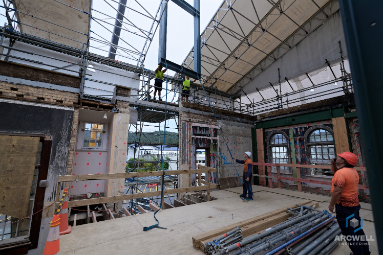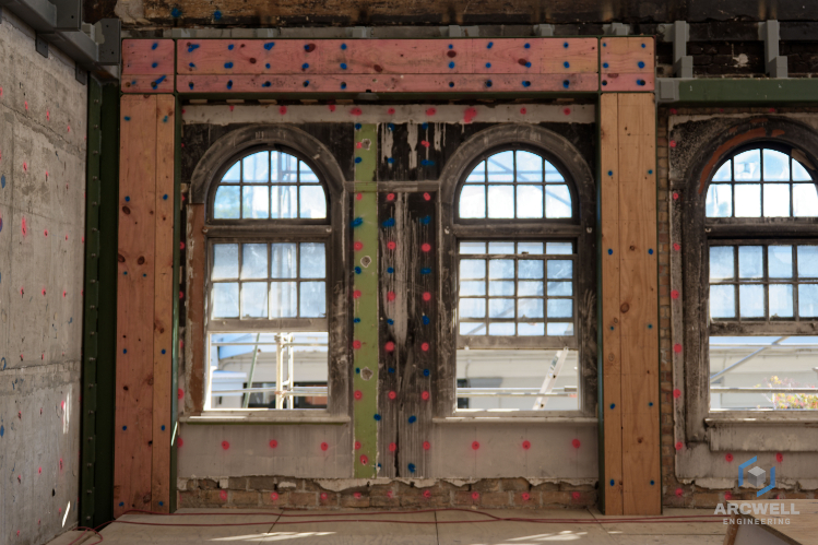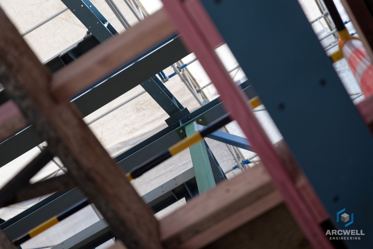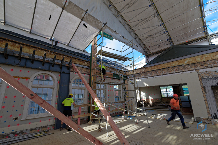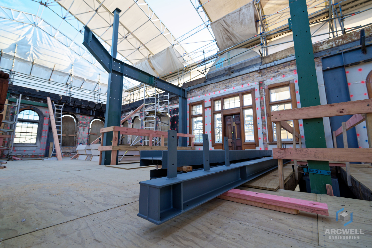 Arcwell’s scope included precision fabrication and installation of large structural steel portals and seismic bracing elements — delivered under challenging conditions within the existing structure.